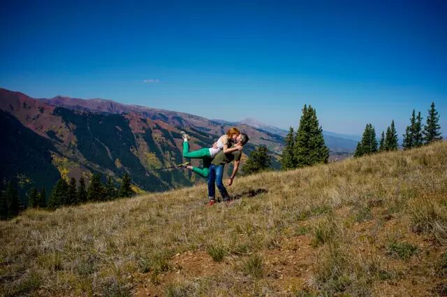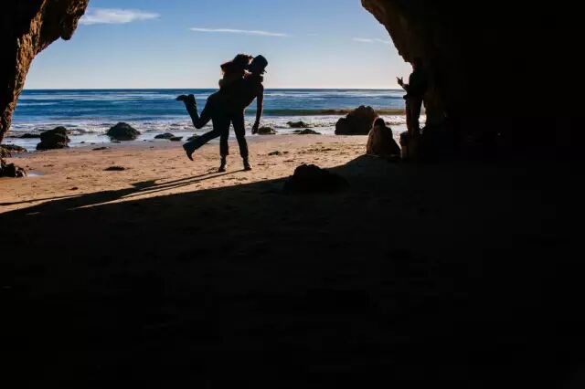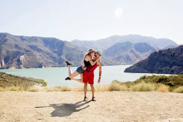 在这一张张浪漫的照片背后中可是夹杂着幸福和辛苦的汗水。由于他们是采用定时自拍的方式,通常好不容易把相机固定在岩石上,就得立刻冲到镜头前摆好pose,着实需要良好的体力呀,不过成果确是异常的甜蜜阿!