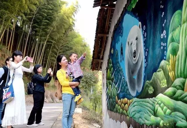 过了祝家村,还可到方旦村去看看。村里农户的墙壁上有很多立体墙绘,只要你有创意,你可以在那里“坐小火车”,再或者是和小熊“玩亲亲”,欣赏艺术之余,还可拍到一些有趣的画面。