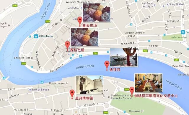 从哪里开始迪拜老城区的旅程?看着地图,不如我们从Deira区的黄金市场和香料市场出发。