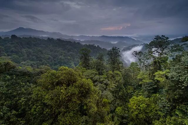 在海拔1200 米以上的乔科—安第斯云雾森林中,正在演奏着美妙的丛林音乐。滚雷是低音部;倾盆大雨使乐曲加快了节奏,敲打着藤蔓植物、树蕨和无精打采的浓密苔藓;昆虫的鸣叫声时高时低,时快时慢,疯狂地变换着音调和速度。当雨靴踩在红泥地的声音停下来时,空气里回荡着一种陌生的翅膀拍击的声音。
