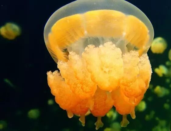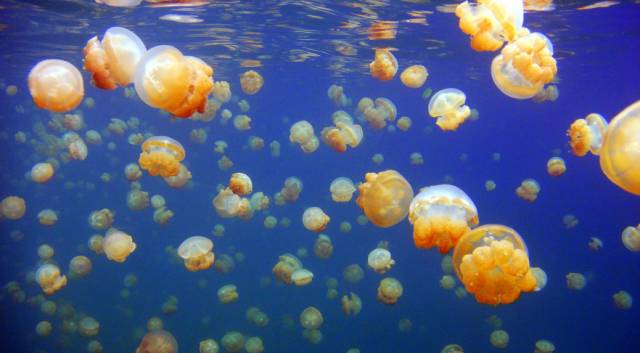 水母湖内生活着数百万只水母,它们是藻类的宿主,通过与藻类形成的共生关系生存。它们主要是靠海藻分泌的营养素为生,因此水母散发着淡淡的橘色光芒。