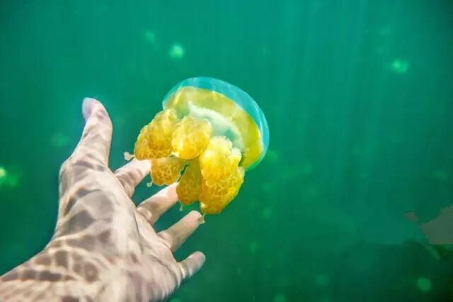 到帕劳旅游的朋友一定会到水母湖,不过要看到这么神奇的小精灵可不容易。水母湖距帕劳首都科罗大约有30分钟的行船路程,到了小岛后,还需要爬山,走上十几分钟,然后再走到小岛中央的咸水湖边,最后再游泳到中央才能看到那些闪闪发光的小精灵。
