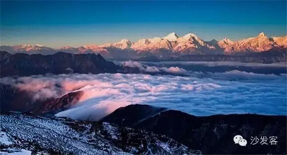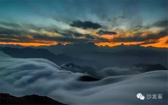 牛背山位于二郎山朝青衣江一侧,视野开阔,云海壮丽,被誉为“中国最大的观景平台”是绝佳的摄影圣地。牛背山的云海,浓密而均匀,壮阔而平缓,随处可见的瀑布云犹如阿凡达中“哈利路雅山”一般让人感觉踏步于空中;而环顾四周连绵不断的群山错落有秩,且层次分明。