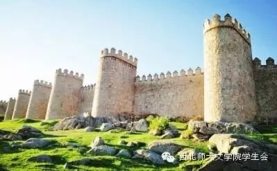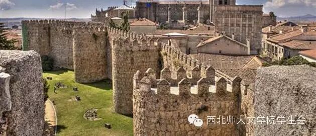 还没到阿维拉,远远地会先被它雄伟的城墙给吸引住,离得越来越近,仿佛也就跟着走进了中世纪。建于12世纪的古城,由9座城门、88个圆形碉堡和2500个城堞组成。城墙逐次连接着碉堡,形成周长2460米的城垣,大致呈6边形,墙高12米,厚3 米,工程浩大,造形奇特,建筑雄伟,世所罕见。虽历近千年,仍完整如初。阿维拉以有这座城垣而闻名于世。城内,富丽堂皇的古建筑鳞次栉比,罗马式大教堂的 半圆形殿与古城垣浑成一体,花岗石建成的外墙,远看像座古堡,内部用带斑点的红白石块砌成。