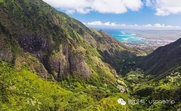 夏威夷各个岛因为地貌迥异,徒步其间的感受也是截然不同的,夏威夷岛上可徒步穿越广袤荒凉的火山熔岩,在茂宜岛徒步,则是满眼苍翠。如果你心仪青翠的山峰与山谷,位于茂宜岛中部、威陆库(Wailuku)以西的伊欧山谷州立公园(Iao Valley State Park )则值得前往。沿着32号公路自驾至主街(Main St),顺着Iao Valley Rd到达公园之后,将车停在入口的停车场,有两条徒步路线可以进山,一览伊欧针型火山锥的风姿。如果你并不是资深老驴也没有关系,公园内的徒步准确说是easy hiking,步道很好走。