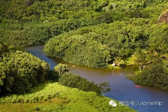 在夏威夷,只有可爱岛拥有可通航的河流,威陆亚河(Wailua River)是最负盛名的一条。你可以乘坐游船老老实实的看风景,总不如自己划着桨沿河前进有趣味。这条皮划艇之旅直达椰子海岸(Coconut Coast),沿途是美丽的丛林和瀑布,人行期间,如在画中。喜欢水上运动的,在利互也(Lihue)可以体验数英里的山间管道滑水。