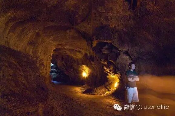 手电筒的照射下,可以看见矿物质神奇的形状与色彩。想想这些凝固的“建筑”曾经是炽热的岩浆,是一种奇妙的情感体验。刚进入洞穴时的通道比较平坦,继续深入则是完全的黑暗,地面也变得崎岖不平,有人望而却步折返回去,真正的洞穴爱好者则会一直走下去。穿越这一段“黑暗之路”需要相对专业的装备,从鞋子到强光手电筒等等。再往前,走到洞穴通道的另一头,眼前豁然开朗,是一片郁郁葱葱的热带雨林。
