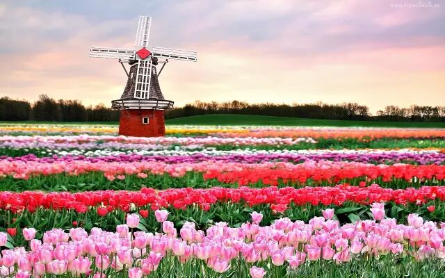 真正幸福的国家是将来老了,也能老有所依,荷兰有一家专为患有老年痴呆和阿尔兹海默的老人的养老院。公园,电影院,画廊和邮局样样俱全,为了让老人们感觉这里是自己的家,居住房屋的风格是按照老人们还记得的年代布置。工作人员还会在村子里各处假装成收银员、超市服务员、邮局员工等,有爱极了! 当地风情: 郁金香早已幻化成了荷兰的颜色符号。春日里,骑着自行车穿梭在郁金香花海里,远处是一个个荷兰风车,这种纯正的田园风也只有在荷兰才能感受得到!