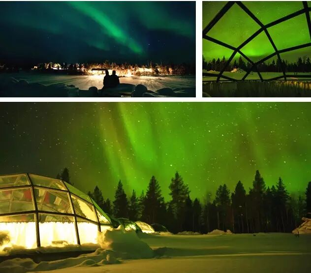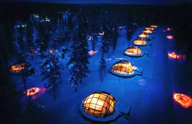 芬兰是世上少有国家中能见到极光,这款玻璃圆顶小屋,仿爱斯基摩人的冰屋而建,看上去有爱又梦幻,玻璃屋配有中央供暖系统,躺在冰天雪地的温暖床上就能欣赏北极光咯,想想就浪漫!也位列全球10大浪漫场景地。