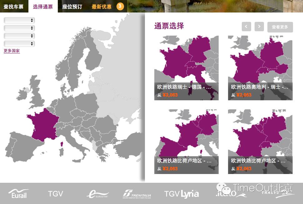 www.raileurope.cn上可以选择各种不同的通票