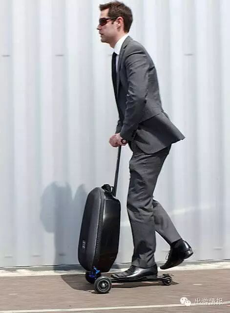它不仅能装行李,还能带你装X带你飞!只要拉出箱底的脚踏板,它就会1秒钟变身滑板车,让你随时随地摩擦摩擦!