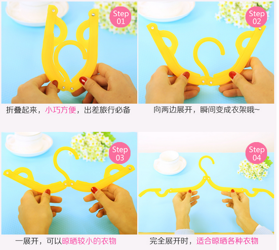 如果旅行想洗一些小东西晒衣服酒店肯定没有,这时候有这个便携衣架展开就解决问题了,不要用折叠不占空间。