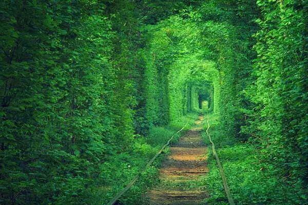 列车享受着树叶的抚摸穿越绿色的海洋,繁茂的枝条每天与钢铁握手。它们都保持在各自的领地之内,绝不向对方的国土冒犯一步。这微妙的平衡铸就了“爱的隧道”,也成就了人类与大自然和谐共生的绝美风景。