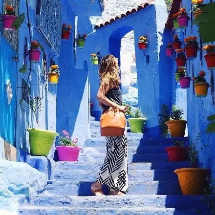 Chefchaouen的居民们认为,「蓝色」代表著「天空」与「天堂」,生活在这裡,就像是漫步在天空中并且想像著天堂的模样,而那一道道长长的阶梯,似乎像是一座座带领我们通往天堂的阶梯呢!