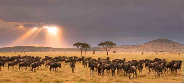 每年牛羚和其他成千上万的野生动物都会穿过东非的平原,迁移至肯尼亚马塞马拉国家野生动物保护区。同时,这种大迁移也会出现在塞伦盖蒂平原的北部,吸引了众多猎人和游客。