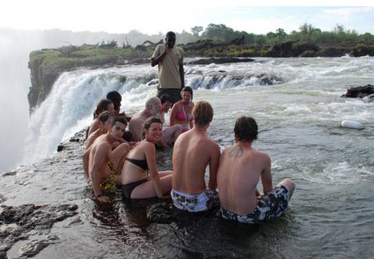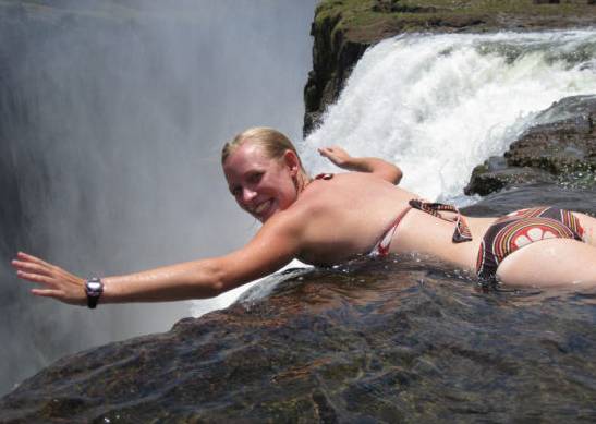 在魔鬼瀑布里游泳