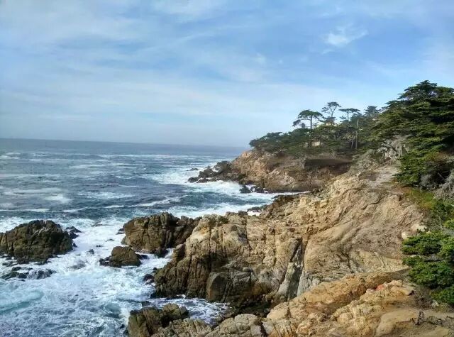 驾车从旧金山出发,沿着1号公路南下洛杉矶,路经蒙特雷市的一处半岛型海边公路,围绕着著名的卵石滩度假区--【美国西岸黄金海岸线17里湾】(约40分钟)这里是加州著名的观光景点之一,被评为全美三大最佳驾车风景路线。这里除了沿路海天一色外、还偶可看到最具代表性的孤寂柏树、槐树;此外,这里还是天然的野生动物公园,如幸运可见海豹、山鹿、海燕、海鸥等就近栖息或散步在路旁。