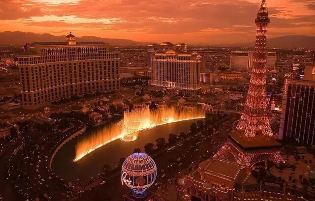 拉斯维加斯的夜晚极其美丽,夜游拉斯维加斯是体验美国的奢华、疯狂和纸醉金迷的最好方式。 当然这里还有耗资6000万美元的灯光秀场,世界之最米高梅酒店,百乐宫酒店前庭人工湖的喷泉会随乐声变幻出各种图案和造型。