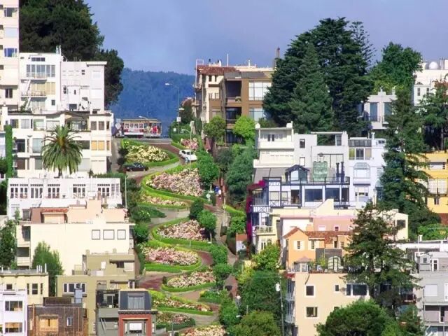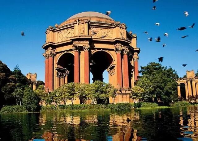 慵懒与不经意之间成就了美国最多姿多彩的创意之城——旧金山。橙红色的金门大桥、蔚蓝色的渔人码头、纯白色的泛美金字塔大厦以及四季色彩缤纷的九曲花街,这是一座适合用心灵去感受独特气息的城市。 金门大桥 每当人们越过太平洋进入北美大陆的旧金山时,首先映入眼帘的便是一座飞架于海湾之上的巨型吊桥,这就是闻名遐迩的金门桥,也是游览旧金山最不可错过的景色。 艺术宫 这座仿古罗马废墟建筑设计主要是要向世人展现一个视觉上的壮观美感,艺术宫主要是一个圆顶的大厅,配上拱门和石柱。简单的设计却有着深远的意义和影响。 九曲花街 世界上最弯曲的街道,因为有40度的斜坡,且弯曲像“Z”字形,所以车子只能往下单行。街道上遍植花木:春天的繍球;夏天的玫瑰和秋天的菊花,把它点缀的花团锦簇。在花街高处还可远眺海湾大桥和科伊特塔,如不开车,可顺着花街两旁的人行步道,欣赏美丽景色。
