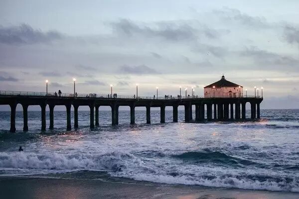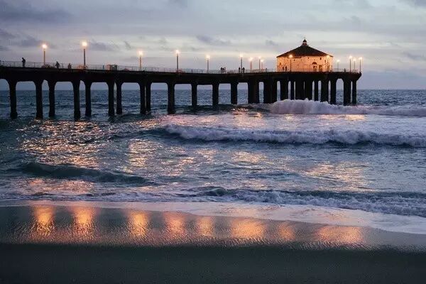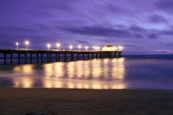 如果这一刻你真在曼哈顿海滩,日落之后不要马上离开。眼前的这个长长的栈桥和码头,会向你展示它最美的一面。