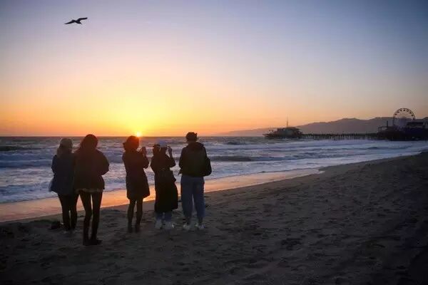 和Terranea Bluff Top Park不同,在圣莫妮卡看日落,除了远山淡影和码头栈桥,真正的风景,其实就是和我们一样的游人们。