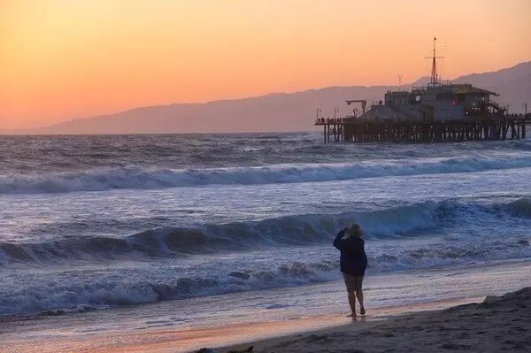 无论是形单影只的摄影师,还是结队而来的闺蜜们。或是风中抱着孩子的妈妈,或是海浪里开怀大笑的朋友,他们才是圣莫妮卡日落里最独特的风景。