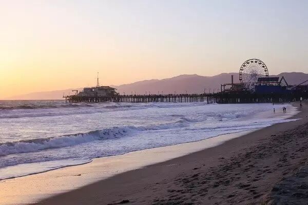一转眼,旅行到了第五天。一场大雨过后,终于雨过天晴。最后一天,我们把看日落的地方选在了圣莫妮卡海滩(Santa Monica Beach)。我们特意订了一家小旅馆,离海滩不到一个路口,希望能在旅程的最后一个傍晚等到一场最悠闲的日落。