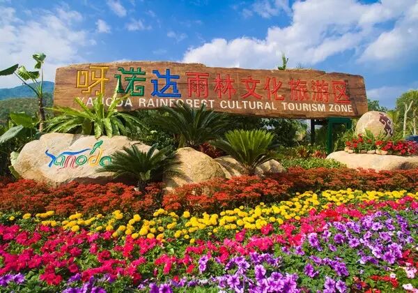 位于海南省三亚市保亭黎族苗族自治县,海榆中线三亚至保亭方向18公里处,距三亚市区仅35公里,距凤凰机场52公里,是名副其实的三亚后花园。呀诺达雨林景区是中国唯一地处北纬18度的热带雨林,堪称中国钻石级雨林景区。景区北与五指山、七仙岭比肩相连;东眺南海万倾波涛,美丽的海棠湾近在咫尺;与南中国第一温泉南田温泉仅一水之隔。景区面积45平方公里,周边是123平方公里的生态恢复保护区,充分以天然形胜和热带雨林景观为主体基础景观,融汇“热带雨林文化、黎峒文化、南药文化、生肖文化”等优秀文化理念于一体,构建一个以“原始绿色生态”为主格调的大型生态文化旅游主题旅游景区,现已建成雨林谷和梦幻谷两个景观区域,及以美国电瓶车、生态栈道、飞瀑索道、高品质旅游巴士环绕成18公里长的园区通道。“呀诺达”是形声词,在海南本土方言中表示一、二、三。景区赋予它新的内涵,“呀”表示创新,“诺”表示承诺,“达”表示践行,同时“呀诺达”又被意为欢迎、你好,表示友好和祝福。