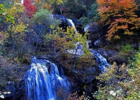 在阜平县城西南30多公里处百草坨东侧,分布着九个大瀑布,一座天然形成的桥梁,被专家鉴定为中国北方最大的瀑布群和由变质岩形成的中国最大的天生桥。