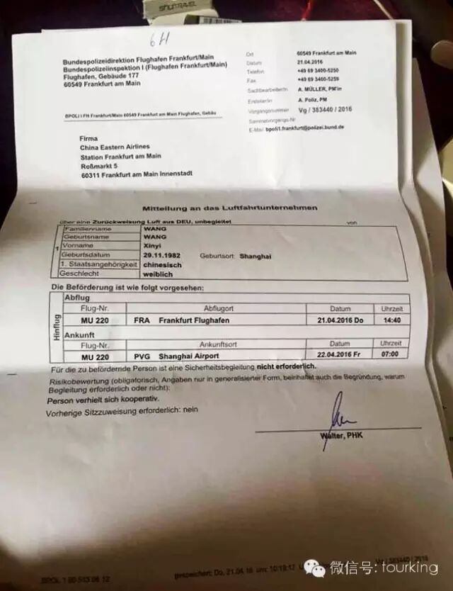 然而近日,王女士夫妇却在德国法兰克福机场被警方扣留了。滞留了近20个小时后,夫妇二人被遣送回国。这一趟,不仅没玩成,而且几万块的机票酒店钱也打了水漂,而为其代办签证的旅行社却态度强硬拒绝赔偿。