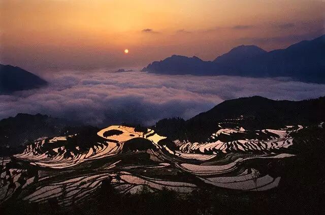 覆卮山梯田里有各种不同的稻子和各类栽种物,漫山的梯田呈现出令人瞠目的斑斓色块,完全可与云南元阳梯田相媲美。