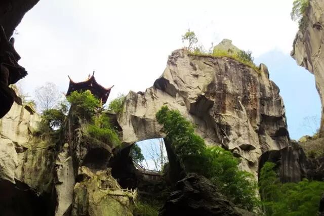 小洞天隐秘在竹海深处的黄公望结庐地,是黄公望生活起居的地方。由于周围山峦起伏,密林遮天,而此地有块平坦处,抬头望天有豁然开朗的感觉,即取名别有洞天。