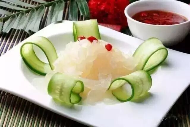 海蜇皮是海蜇的制成品。海蜇是一种大型食用水母,早在一千六百多年前的晋代就已经开始食用。海蜇能软坚散结、行淤化积等疾病有益,并有防治肿瘤的作用。