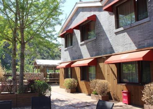 这里的建筑风格独特,与自然、人文景色相得益彰——站在每一个木屋的阳台,都能看到旖旎雄伟的古老长城和葱茏苍翠的山间美景。这里的房间设施齐全,干净舒适,饮用水全部为山泉水。餐饮则以虹鳟鱼和农家饭菜为特色。