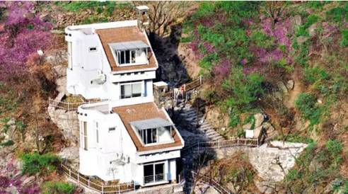 进入“那里”,首先映入眼帘的是一座三层白色主体小楼。它就是度假村的主建筑,也是客房。在面向小河的所有阳台上,主人别出心裁的把它做成了一个个小巧的特色茶室,游人可以在观赏无限美景的同时,还可以与亲朋闲话家常。