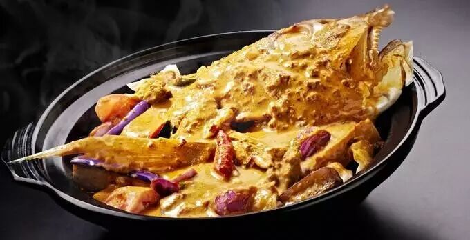 咖喱是地道的印度特色,而鱼头又为华人最爱,二者能走到一起,的确可算是一道新加坡自创的印度佳肴。这道菜最早由新加坡的印度人开创,原本只是做给爱吃鱼头的华人吃;渐渐的,马来人和印度人也开始爱上这道菜肴,并经过多年的改良,咖喱鱼头的名声便开始广为传播。