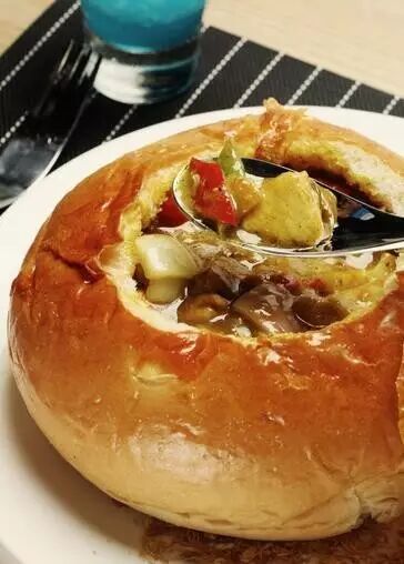 一个“巨无霸”般的超级面包,内里却大有乾坤,这就是颇具异国情调的面包鸡。有美食行家认为,面包鸡是马来西亚的特色美食,松软的面包里面包着可口的咖喱鸡让人垂涎欲滴。