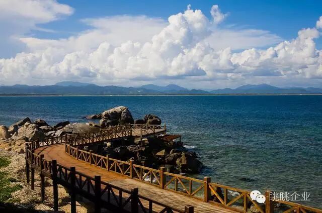 闲、避寒、冬泳、娱乐的理想去处。岛上有2000多种植物,乔木高大挺拔,灌木茂密葳蕤。该岛东、南部最高峰海拔79.9米,悬崖壁立,其下礁石万状,惊涛击石,浪花如雪。西及北部地势渐平,一弯沙滩,沙质细白。环岛海域水清见底,能见度极高,可达27米。盛产夜光螺、海参、龙虾、马鲛鱼、海胆、鲳鱼及五颜六色的热带鱼。南部水域海底珊瑚礁保护很好,五彩斑斓,形态奇异。这里是海上娱乐特别是潜水观光的首选之地。