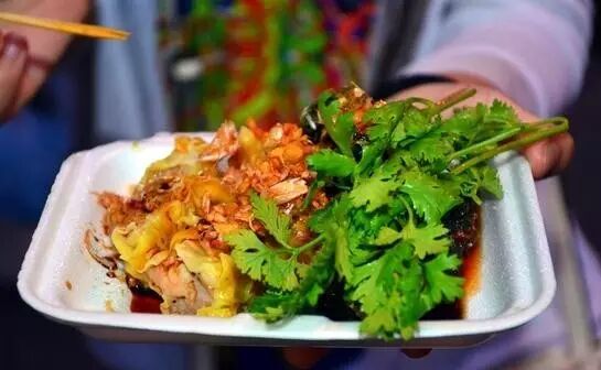 随随便便点的竹笼烧麦,浇上酱汁,洒上几片香菜,好吃的让人矛盾,想再来一笼吧,又放不下旁边的小吃摊,一路吃过去,是我们在曼谷的终极目标。