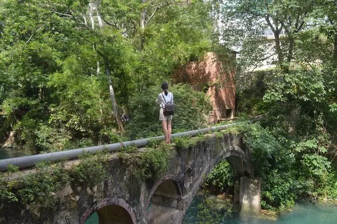 有时候我觉得自己真的很勇敢,明明很怕水,明明有点炫晕,但是还是敢在这仅能一人通行的小桥上摆出各种姿势。