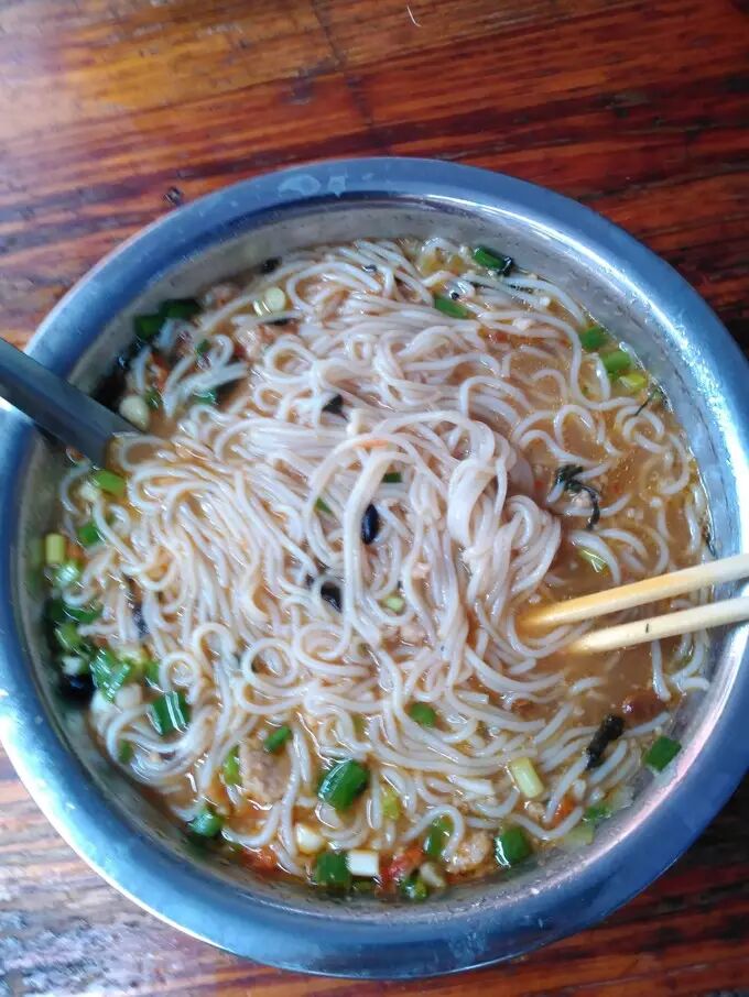 饱餐一顿杨梅,下午两点,前往武鸣,在武鸣不得不提的美食,就是武鸣人人喜爱的榨粉,最为出名的就是车站附近的粉之娇榨粉店,六块钱一大碗,大快朵颐。