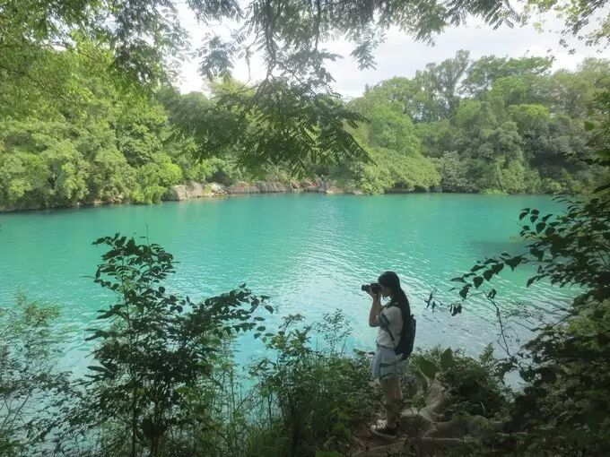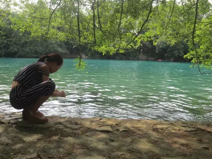 百度百科上是这样描述灵水的: 灵水,位于广西南宁市武鸣区,全国三大恒温泉水湖之一,湖面面积达2.93万平方米,周长一公里许,水深2-3米,是个天然的泉水湖。湖中九股清泉,潺潺突涌,湖水终年清澈见底,其水质、水位终年不变,冬暖夏凉,具有恒量、恒清、恒温的特点。我一般都很少相信百度百科上的描述,总觉得夸大了事实,但是身临其境,才发现,灵水,是超乎想象的美。