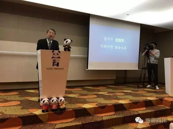 四川省旅游代表团团长陈立祥先生为大家介绍了四川最新的LOGO含义,以及推介了四川丰富的旅游资源并盛邀韩国游客前往四川旅游体验,“四川,不仅仅是熊猫”也让现场嘉宾和民众留下了深刻印象。