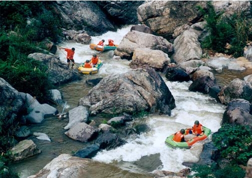 黄腾峡峡谷漂流全程4。8公里,河道总落差168米,最高落差12米,最长落差近百米,大小落差有130多处,是其他漂流景区无法比拟的。其中全程勇猛漂4。8公里,天然猛士漂2。8公里,观景勇士漂2公里,三种漂法各具特色,适合不同需求的人群。