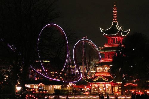 5.在丹麦哥本哈根精美的Tivoli娱乐园中嬉戏。