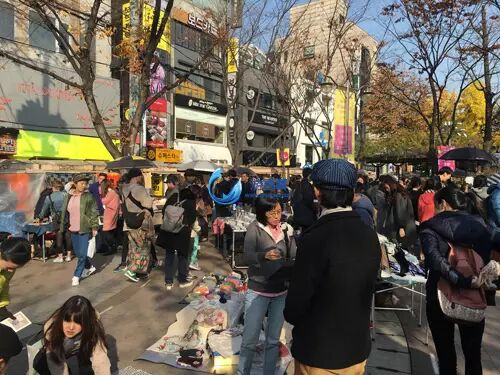 集艺术、美术、影像及音乐相关于一身的弘大,让这个区域洋溢着艺术的氛围和青春创意,许多来自弘益大学的学生,假日时就会到附近的儿童公园举办的手工艺术创作市集摆摊卖艺。这里白天的逛街区域分布较散,而到了晚上摇身一变成为充满魅力的不夜城,韩国着名的续摊文化,在饱餐一顿后来到此唱唱KTV、喝喝小酒叙叙旧,便是韩国最正统的「夜生活」啦!