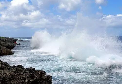 在绵延几公里的海岸线上,每天都能看到大小不一的浪潮,有时可高达数十米。只要你有耐心,总能见到那“惊涛拍岸卷起千堆雪”的一刻 :汹涌的海水从林立的珊瑚礁洞穴中喷薄而出,高耸的水柱在海岸绽放随后散落为层层水花,蔚为壮观。
