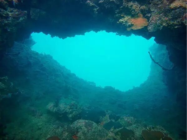 观看完鲸鱼,可以去距离瓦瓦乌岛不远的海底洞穴潜水。当明媚的阳光照射到这个海底洞穴的洞口时,能见度极高的海水把阳光折射出随波纹变化而闪烁的光束。