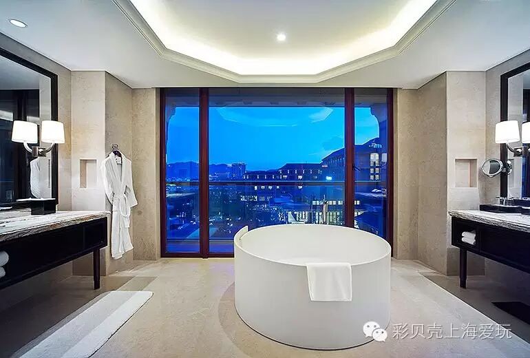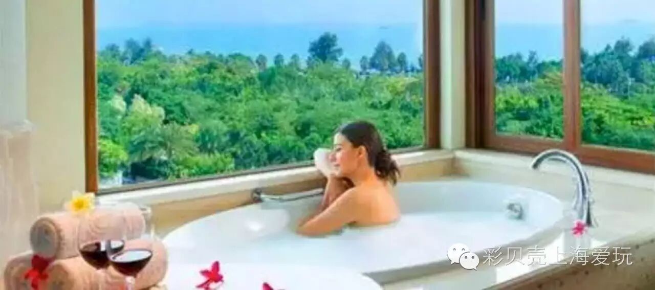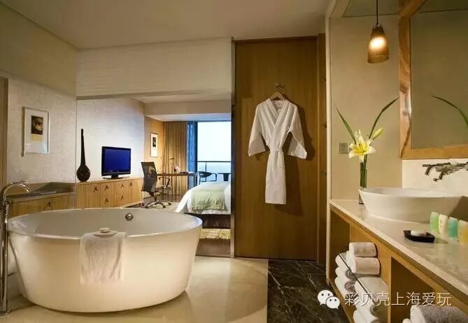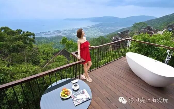 酒店占地100万平米,50万平米的园林景致堪称世界一流。这样一座天然氧吧,方可惬意的观海听风、登山观日,感受着大自然的清新空气。客房的开放式阳台,可尽览山海园林,可俯视花园泳池。值得一提的是观景浴缸,泡着澡,看着辽阔的海景,别提多惬意了。