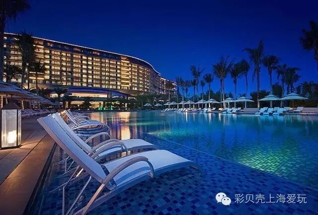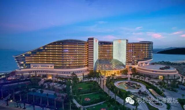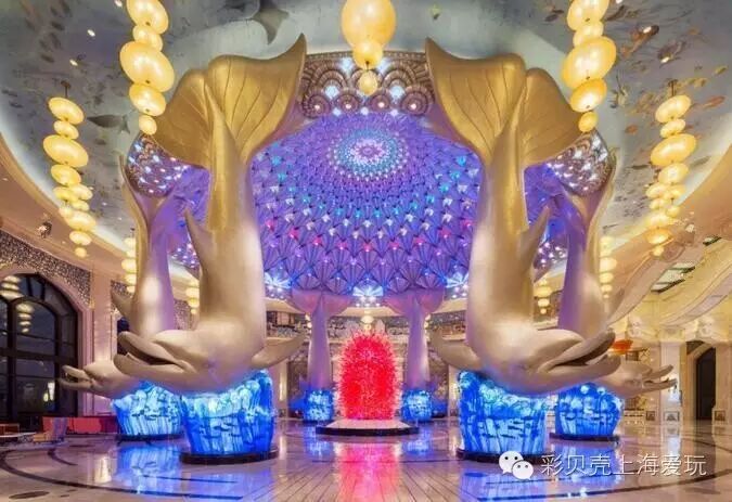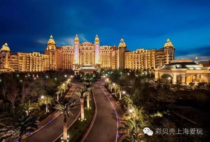 总占地约30万平方米的酒店由全球酒店建筑设计领域NO.1的美国WATG建筑集团设计,这座独一无二的海洋宫殿以海豚为主题,处处充满了关于海洋的巧思,酒店外观犹如城堡,晚上灯光映衬下很美,大堂富丽堂皇,尤其海豚造型的装饰十分夺人眼球,到处都能看见海洋元素,花园很漂亮,有泳池,海豚池,火烈鸟,通往海洋王国的运河,室外水上乐园。